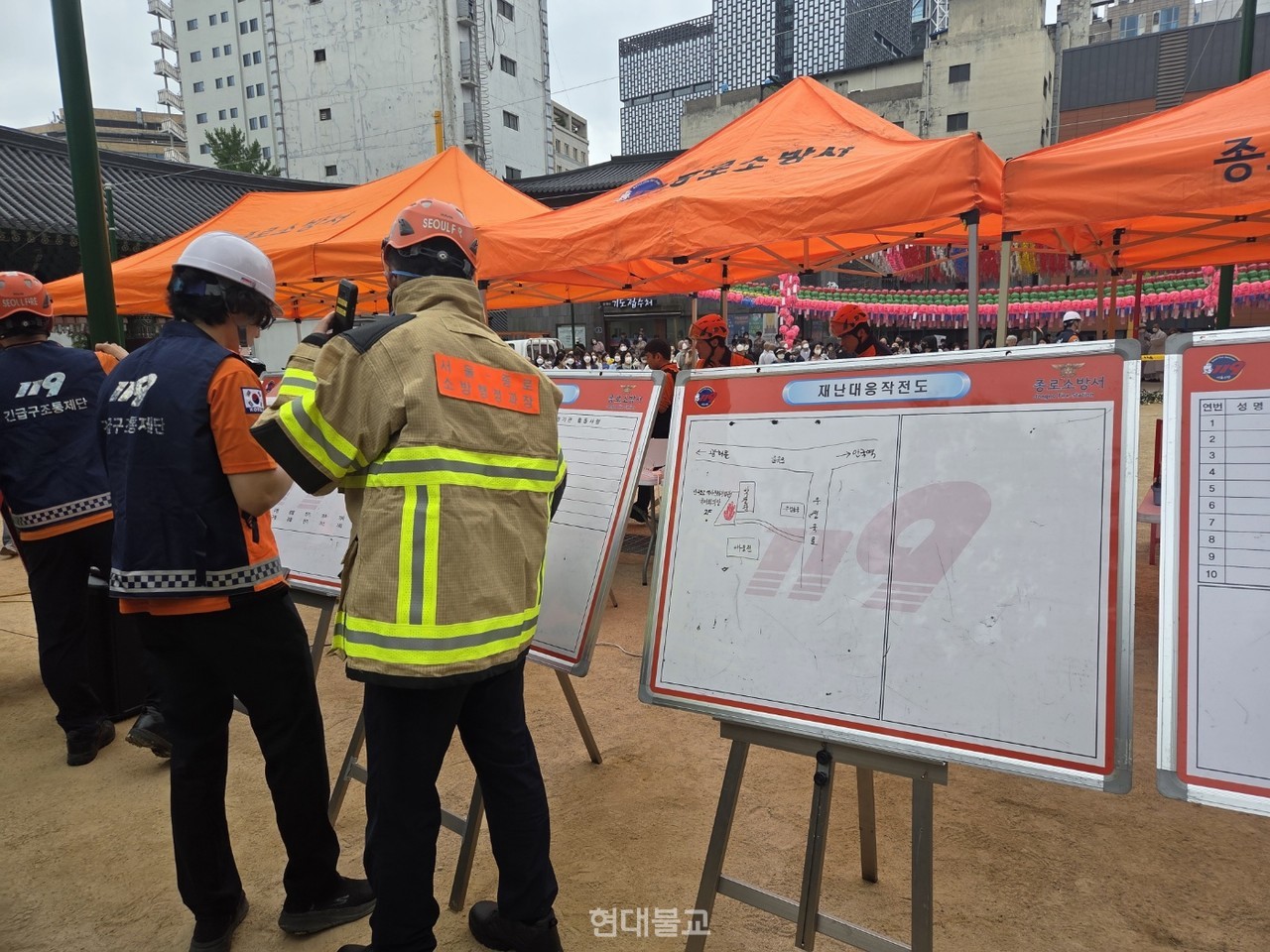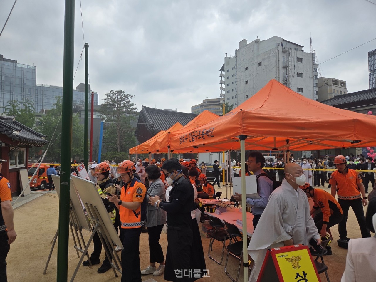 서울 종로소방서는 화재 직후 출동해 조계사 경내에 소방본부와 임시대피소를 설치하고 소화 작업을 진행 중이다. 발화 지점인 2층 국제회의장 천장에 대한 외부 소화 작업과 내부 진입을 통한 소화 작업이 동시에 이뤄지고 있는 것으로 알려졌다.