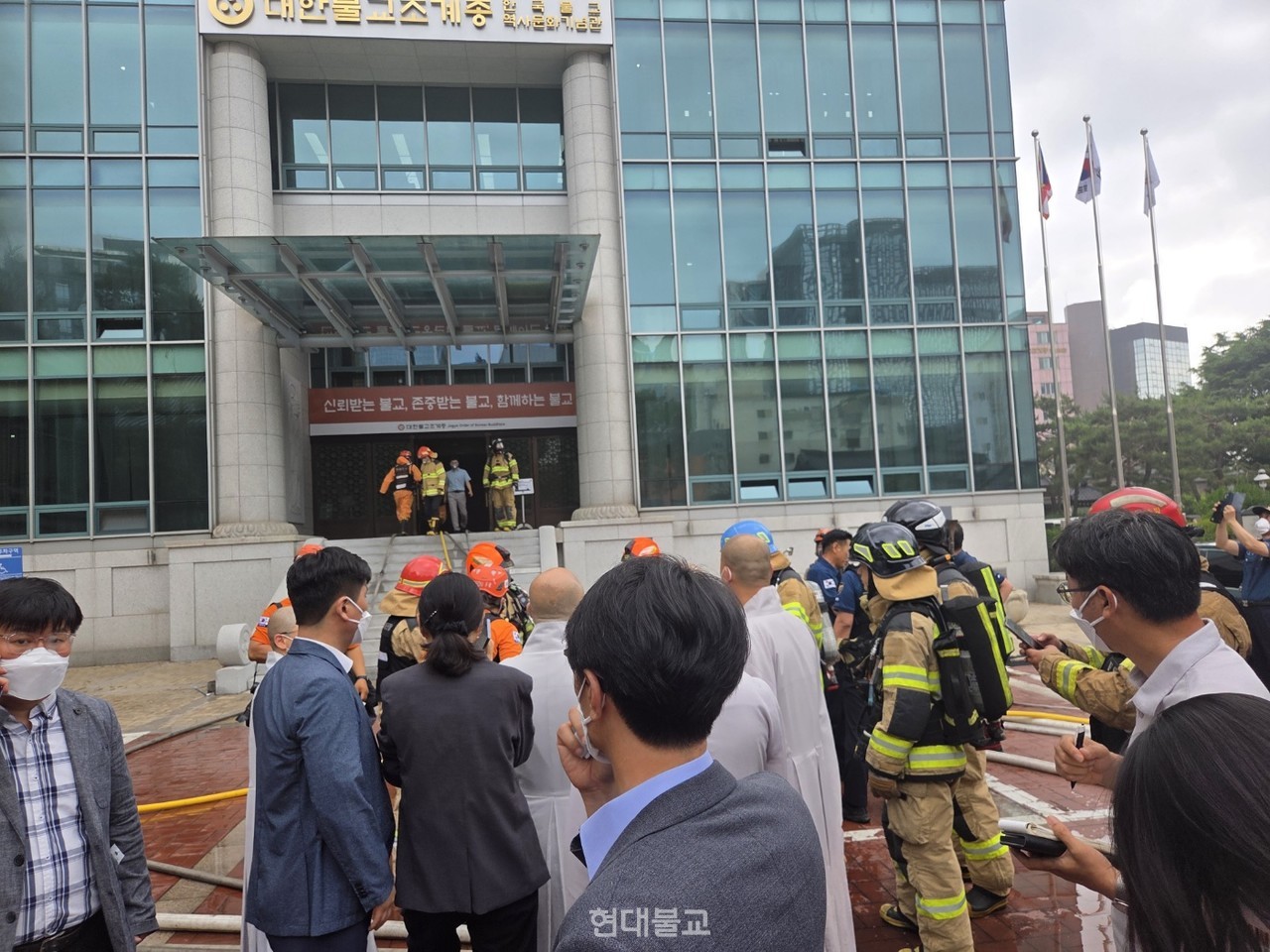 - 조계종 청사 국제회의장 로비 전소… 내부 연기·분진 매캐