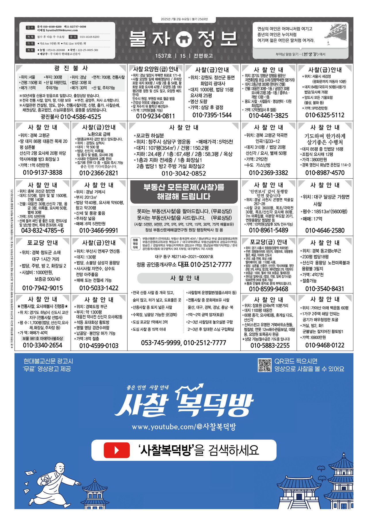 이전 기사보기 다음 기사보기 2025년 7월 첫째주 '금주의 불자정보 생활안내' 글자크기 설정 가 가 기사의 본문 내용은 이 글자크기로 변경됩니다. 스크롤 이동 상태바 생활안내 불자정보 2025년 7월 첫째주 '금주의 불자정보 생활안내' 현불뉴스 업데이트 2025.07.01 17:44 입력 2025.07.01 17:42 댓글 0 현불뉴스 hyunbulnews@hyunbul.com 다른기사 보기 저작권자 © 현대불교 무단전재 및 재배포, AI학습 및 활용 금지 개의 댓글 회원로그인 작성자 비밀번호 댓글 내용입력 댓글 정렬 최신순 추천순 답글순 BEST댓글 BEST 댓글 답글과 추천수를 합산하여 자동으로 노출됩니다. 닫기 더보기 댓글삭제 삭제한 댓글은 다시 복구할 수 없습니다. 그래도 삭제하시겠습니까? 비밀번호 댓글수정 댓글 수정은 작성 후 1분내에만 가능합니다. 본문 / 400 비밀번호 내 댓글 모음 닫기