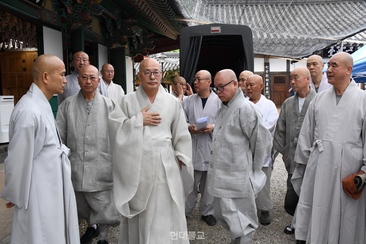 조계종 총무원장 진우 스님이 7월 4일 취암당 만당 종사의 빈소를 찾아 조문했다.
