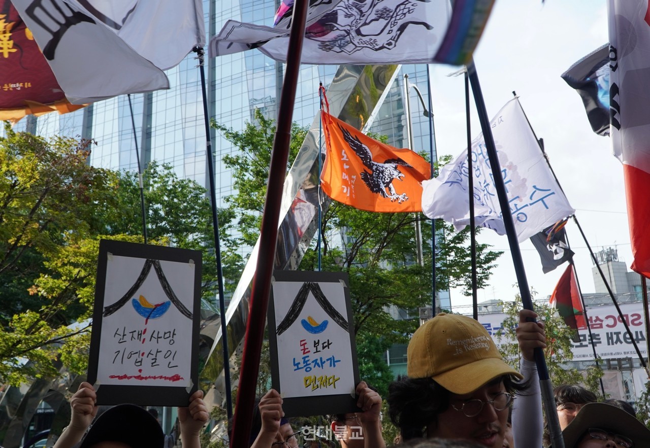 SPC삼립 시화공장에서 50대 여성 노동자가 끼임사고로 고인이 된지 49일째 되는 7월 5일, 서울 양재동 대로에 '신묘장구대다라니'가 울려 퍼졌다.