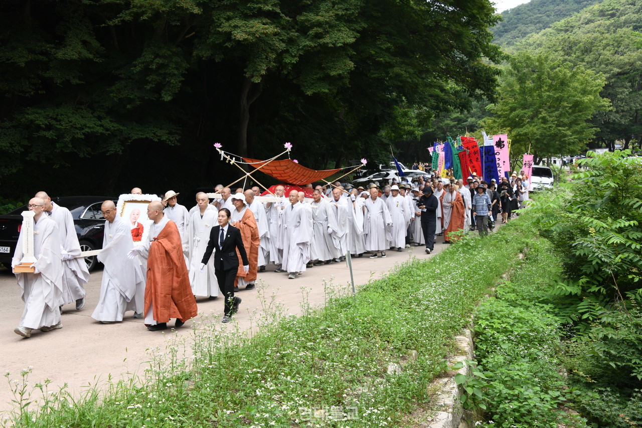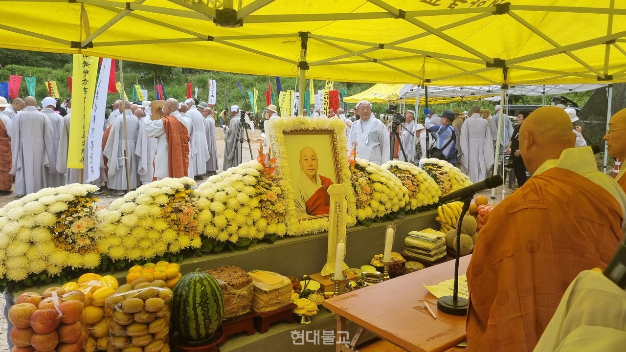 조계종 제18교구본사 백양사 주지 무공 스님은 추도사에서 “천진한 얼굴에 호쾌한 웃음소리 온 산을 울리고 동그란 눈매에 따뜻한 가슴은 얼음을 녹인다”면서 “떠날 때 다시 만날 것을 믿지 않는 것은 아니나, 기약할 수 없음을 슬퍼한다”면서 스님을 향한 그리움을 표했다.