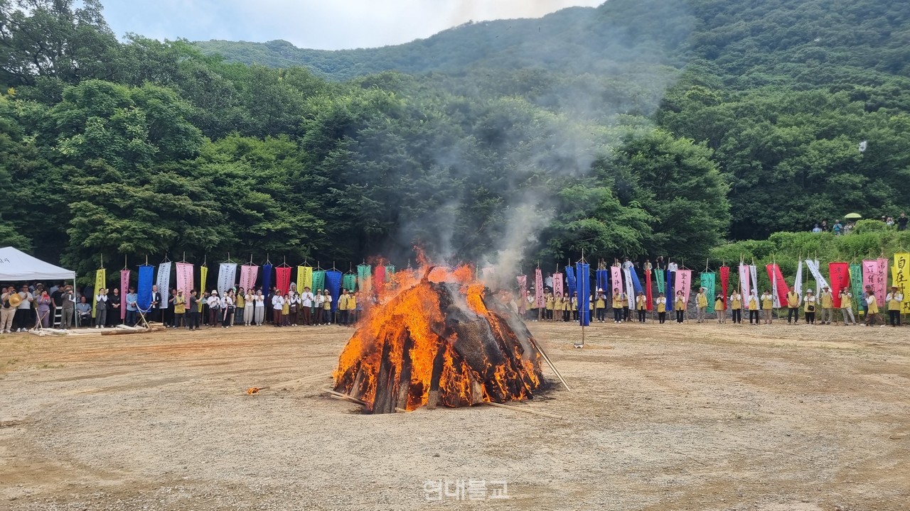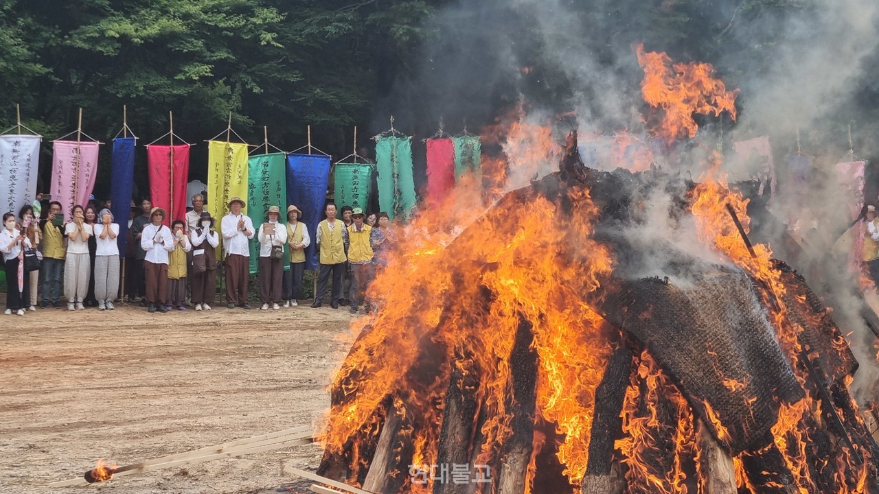 스님의 법구와 만장 행렬이 연화대에 도착하고 이어 다비식이 엄수됐다. 사부대중의 “나무아미타불” 염불성이 메아리가 돼 불갑산에 울렸다. 염불소리가 연화대에 가득 차는 순간 “불, 법, 승” 외침과 함께 만당 스님의 법구는 솟아오르는 불꽃과 연기 따라 서서히 지수화풍으로 돌아갔다.