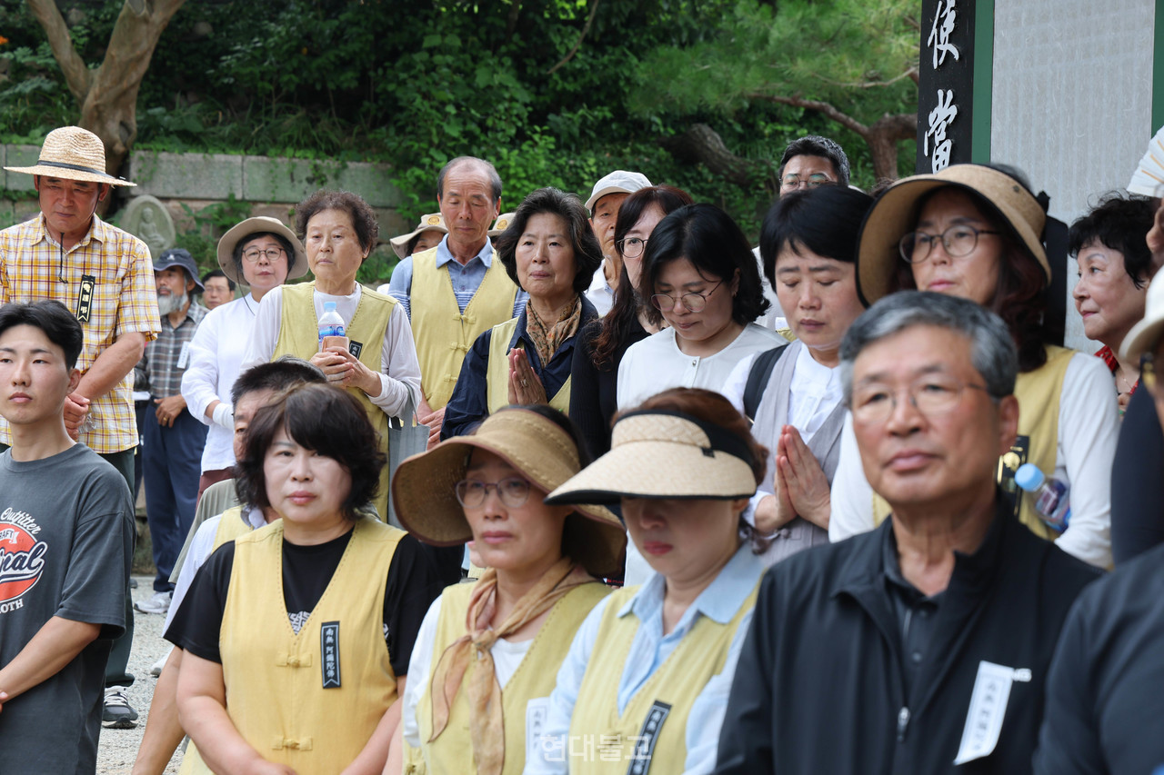연일 체감온도 40도에 육박하는 더위가 기승을 부리는 가운데에도 만당 스님의 마지막 가는 길을 배웅하기 위한 불자들의 발걸음이 이어졌다. 각계각층에서 사부대중 1000여명이 참석했다. 협소한 장소로 영결식장 입장이 쉽지 않자 추모객들은 스님의 법구가 다비장으로 이운되는 길가에서 삼배를 올리며 스님과 눈물의 마지막 인사를 나눴다.