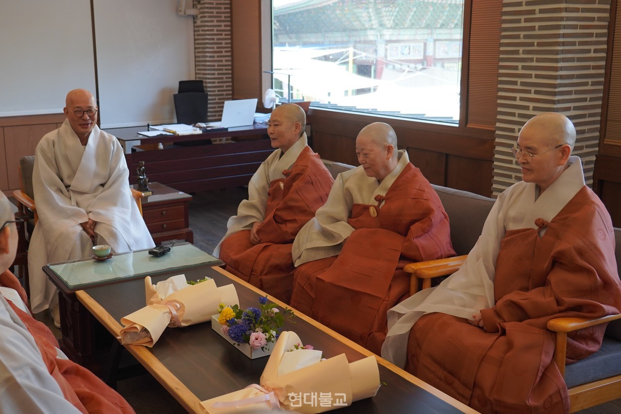 비구니 법계위원 스님들은 "총무원장 스님께서 마음 써 주신 덕분"이라고 감사의 뜻을 전하고 한국불교역사문화기념관 화재 복구 기금 1000만원을 전달했다.