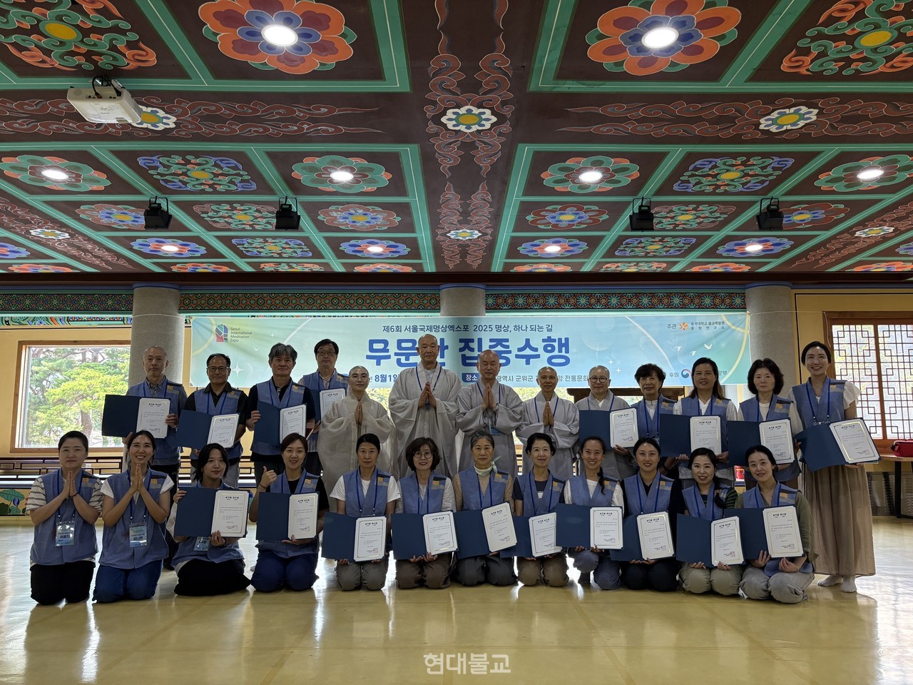 동국대 불교학술원 종학연구소(소장 정도 스님)가 8월 1일부터 5일까지 군위 제2석굴암에서 ‘무문관 집중수행’을 진행했다. ‘제6회 서울국제명상엑스포’ 연계 프로그램으로 마련된 이번 집중수행에는 불자 20명이 동참해 오롯이 자기 마음과 마주하는 4박 5일의 여정을 이어갔다.