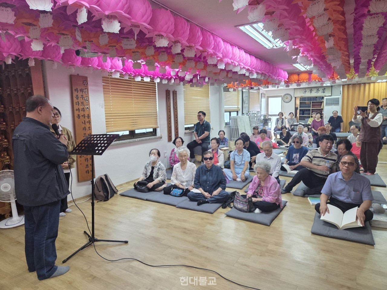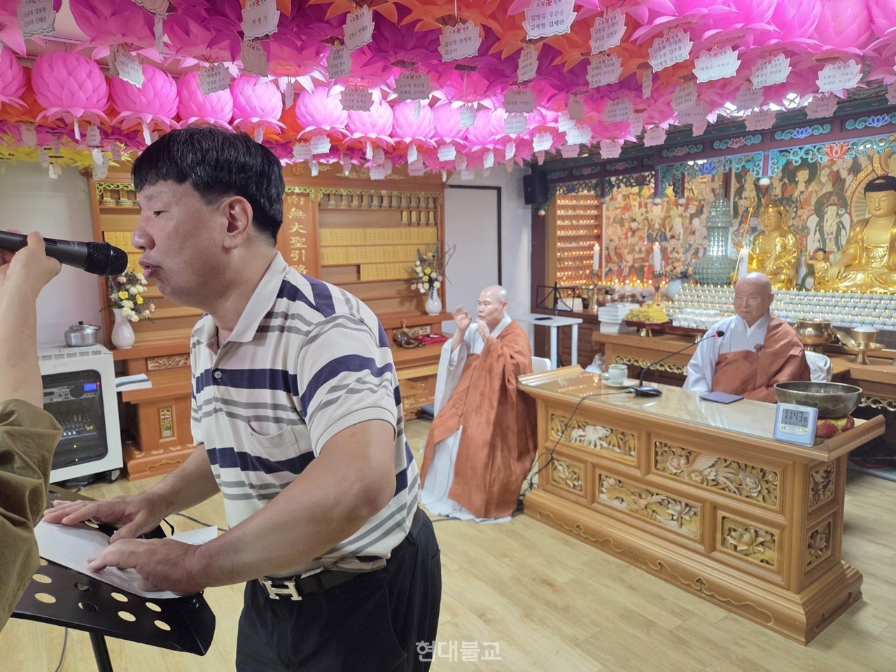 이날 강태봉 회장이 ‘낙엽’, 김재형 불자가 ‘나도 할 수 있어요’, 김종수 불자가 ‘보이는 것’, 박인수 불자가 ‘딱새’, 이은영 불자가 ‘청산유수’, 조주영 불자가 ‘나는 어디로 가자’, 유정숙 불자가 ‘제비꽃’을 점자책을 짚거나 암송해 정성껏 낭송했다.