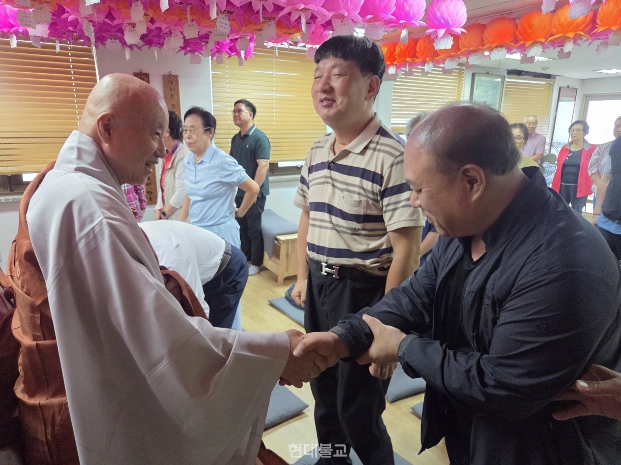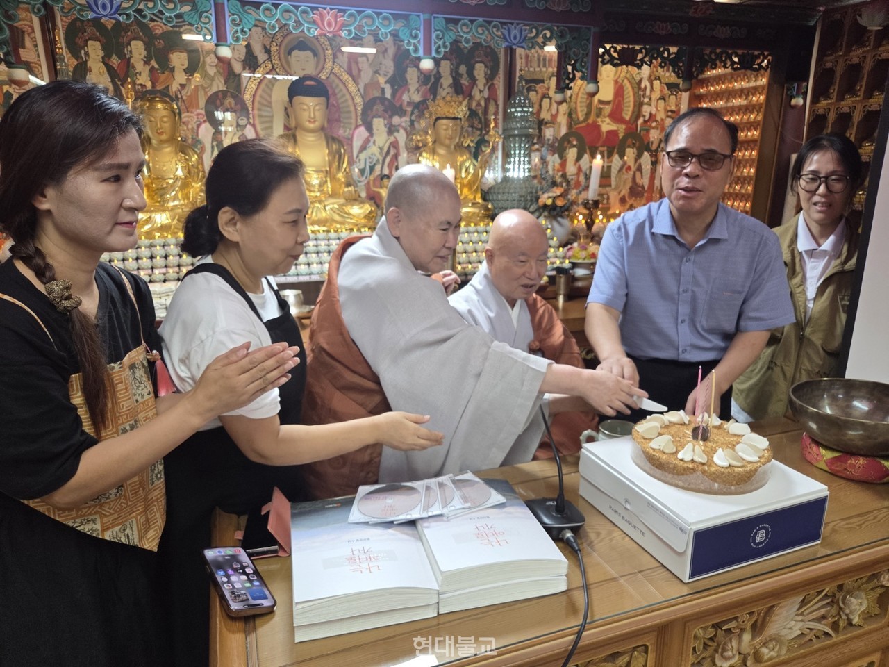 법회 후 점자 시집 출간을 축하하는 케이크 커팅식이 진행됐고, 법산 스님은 참석자들과 일일이 악수를 나누며 감사 인사를 전했다.