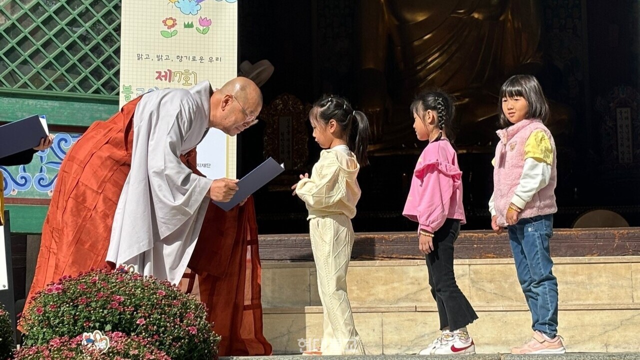복지재단 대표이사 도륜 스님은 “아름다운 국화 향이 가득한 조계사에서 고사리 같은 손으로 조계사의 아름다운 풍경들을 담아준 꼬마 화가들이 있어 고맙다”면서 “오늘을 계기 삼아 어린이들이 불교의 따뜻한 가르침을 몸소 느끼고 서로를 존중하며 행복을 나누는 법을 배웠기를 바란다”고 격려의 말을 전했다.