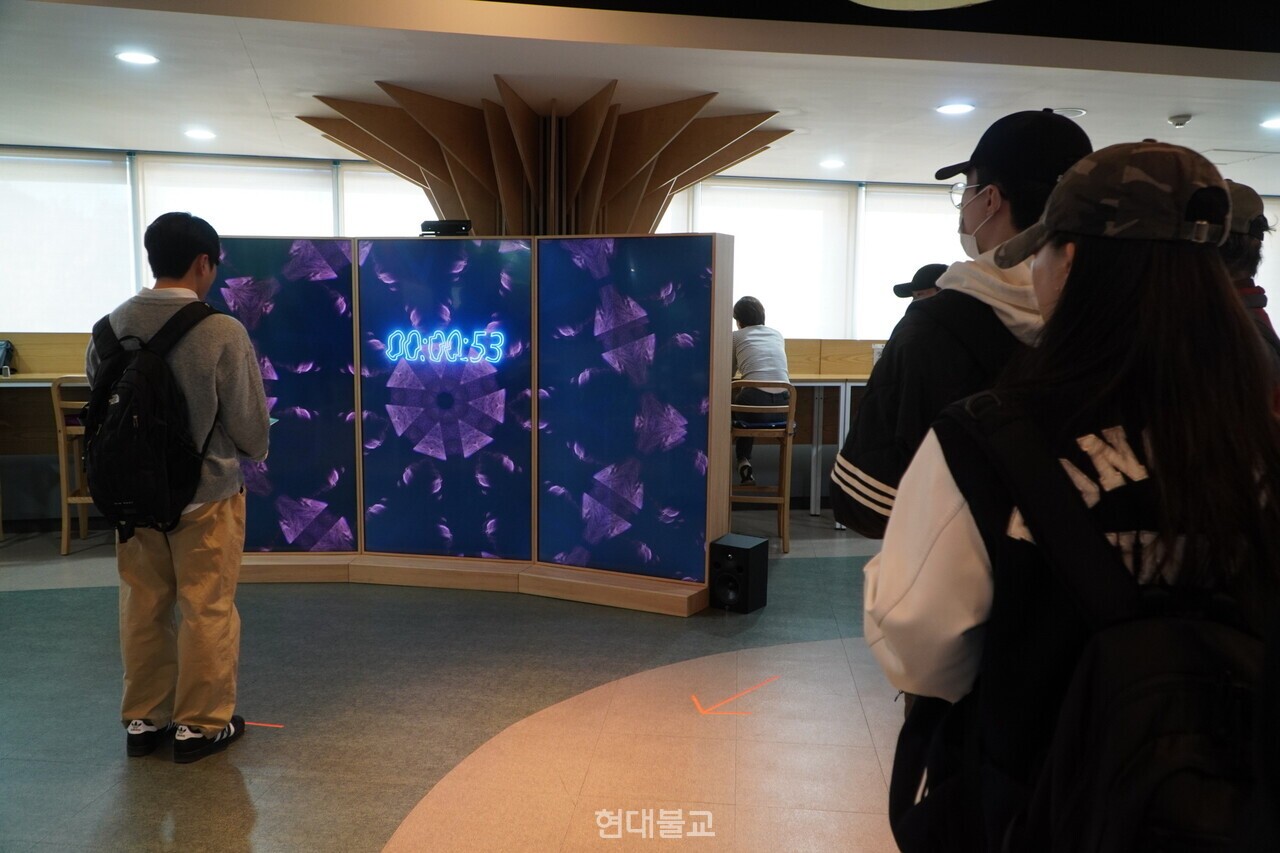 11월 14일 동국대 중앙도서관 IF존에 마련된 ‘AI와 함께하는 마음돌봄 체험’은 총 3가지로 나뉜다. A존은 AI심리상담, B존은 디지털 마음진단, C존은 ‘인간의 거울’ 작품으로 구성됐다. 이날 모든 구역이 마음상담을 받기 위한 동국대 학생들로 인산인해를 이뤘고, 기자는 4가지의 AI상담과 디지털 진단 검사를 받았다.