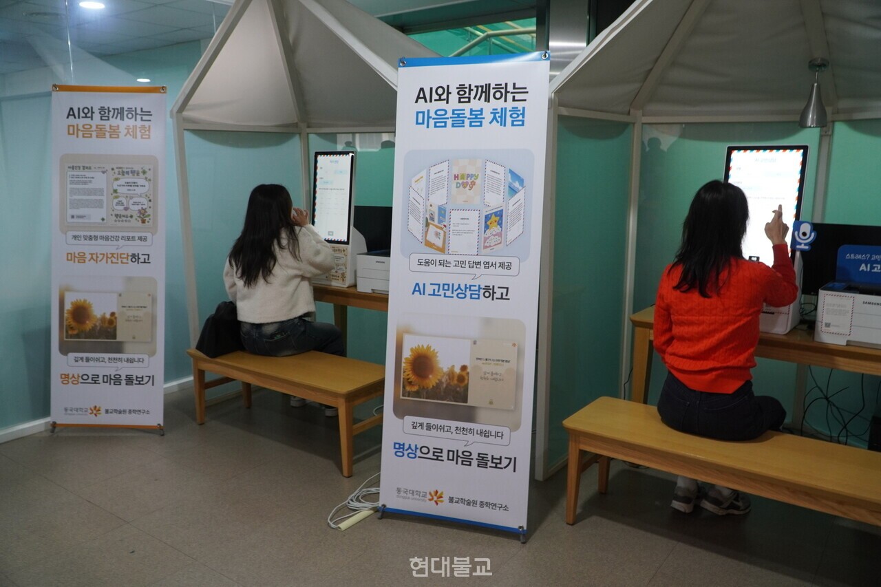 이 같은 AI·디지털 마음돌봄 체험은 동국대 학생들에게도 신선한 경험으로 다가왔다. ‘인간의 거울’을 체험한 정민교(자율전공학부) 씨는 “AI가 저를 관찰해 측정하는 내용이 정확하지는 않은 것 같다. 하지만 명상 관련된 부분은 잘 캐치한 느낌이 있다”고 밝혔다.