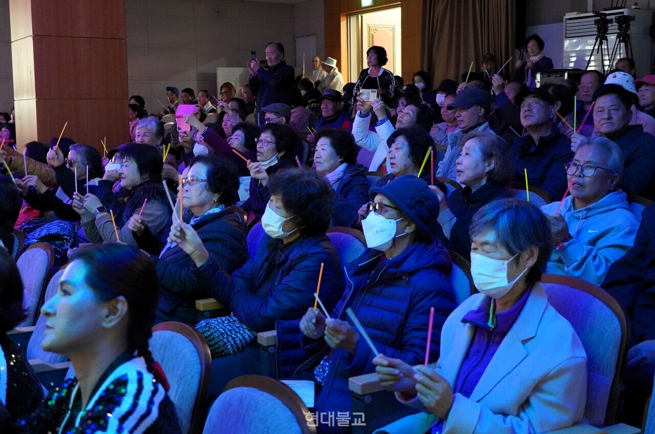 본격적인 음악회가 시작됐다. 이날 공연에서는 해성 스님이 마하무용단·마하연모회와 함께 무대에 올라 신명나는 난타공연을 펼쳐 큰 박수를 받았다. 기원 스님의 플루트 연주를 비롯해 불자가수 민서연‧화영‧송우주, 국악인 남상일 등의 공연이 이어졌다.