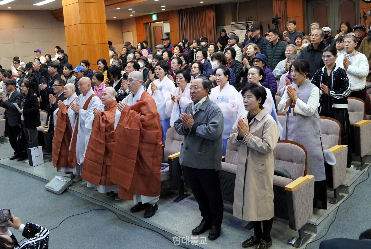 전국비구니회장 광용 스님은 종로노인종합복지관장 정관 스님이 대독한 격려사에서 연화원 가족들의 꿈과 희망을 응원했다. 그러면서 “의미 있는 활동들이 더 많은 이들에게 전해질 수 있도록 해성 스님의 자비행에 마음을 모아 함께해 달라”고 당부했다. 생명나눔실천본부 이사장 일면 스님도 치사를 보내 “모두가 서로의 다름을 이해하며 더불어 살아가는 길을 기꺼이 걸어갈 때, 그것이 바로 참된 자비의 삶”이라고 강조했다.