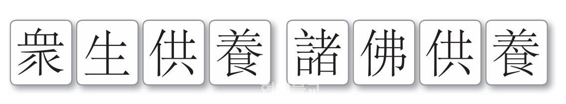 공양(供養)은 자비가 현실 속에서 구현되는 가장 구체적인 실천이다.〈화엄경〉‘보현행원품’보현보살의 광수공양원(廣修供養願)은 공양의 의미를 이렇게 밝힌다.