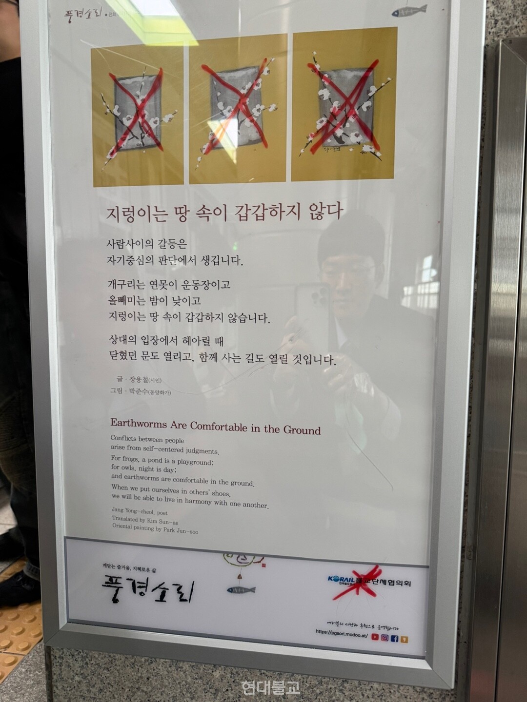 한편 1999년 창립한 풍경소리는 2000년대 초반부터 지하철 역사 등에 부처님 가르침을 전하기 위해 게시판을 운영해 오고 있다. 현재 전국 지하철 및 KTX 역사에 2844개의 게시판을 설치해 운영하고 있다. 전국 150여 명의 포교위원이 2개월에 한번씩 게시물을 교체하는 자원봉사활동을 하고 있다. 2년 전부터 불자들의 십시일반 후원을 받아 낙후된 게시판을 최근 전량 교체한 상태다. 02-736-5583